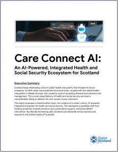 A landmark strategy report released today proposes a radical redesign of Scotland’s public services, calling for the creation of an AI-powered, integrated ecosystem for health and social security under a banner of ‘Care Connect AI’.